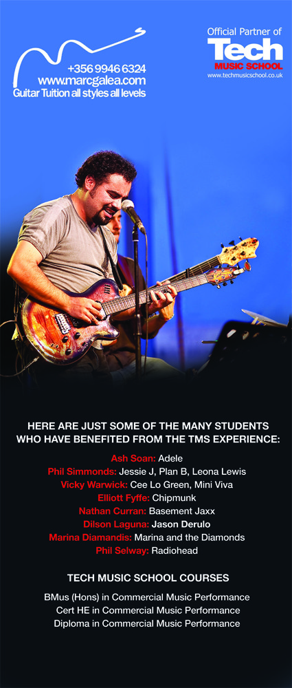 Marc Galea will help prepare students to further their education and networking Tech Music School. Marc is trained to hold assessments in Malta on behalf of TMS Based in London, UK, Tech Music Schools an established market leader in popular music education, delivering professional, real world training for serious minded musicians offering training in vocals, guitar, bass, drums, music business, music production and songwriting